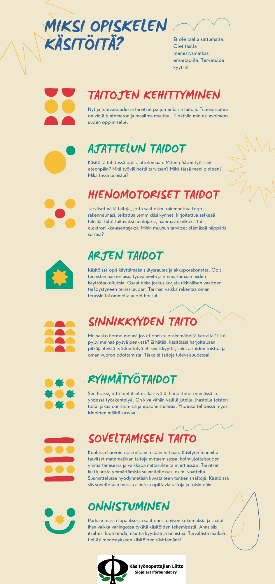 Educa-messuilla pisteellämme oli qr-koodin takana juliste, johon oli lueteltu käsitöissä opiskeltavia taitoja. Tästä voit tulostaa julisteen luokkasi seinälle.